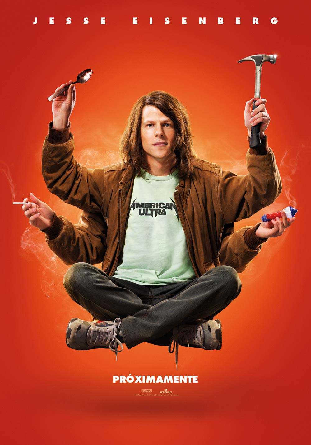 American ultra SinopsisComentarioRepartoFicha técnicaFotosTráilerNoticias American ultraDirigida por Nima Nourizadeh ¿Qué te parece la película?GenialMuy buenaEntretenidaInteresanteMediocreUn rolloVotar Ver resultados Cartel de la película American ultra. Póster en alta definición Cartel 4 de 6Ampliar << AnteriorSiguiente >> Jesse Eisenberg / levitando