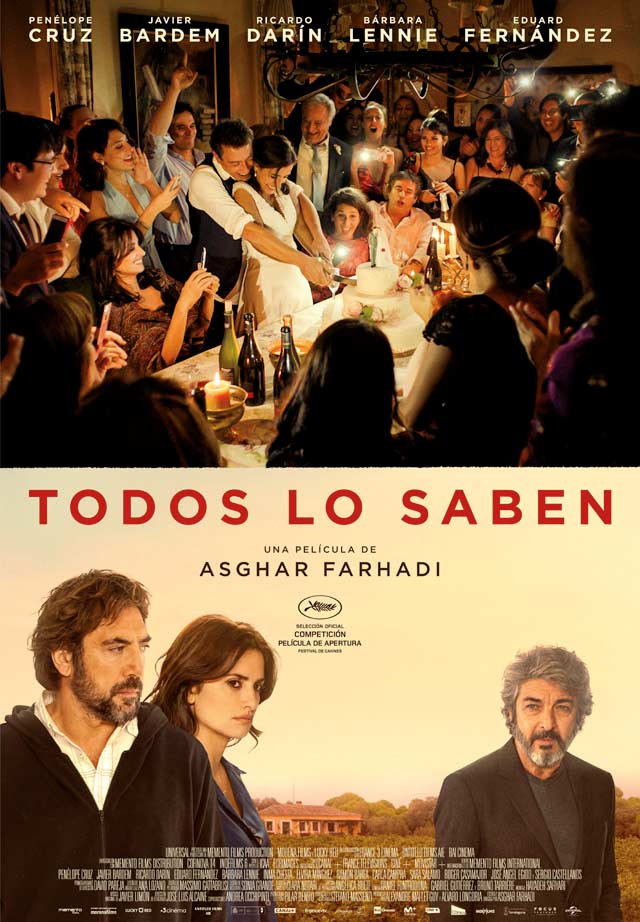 Todos lo saben SinopsisComentarioRepartoFicha técnicaFotosTráilerNoticias Todos lo sabenDirigida por Asghar Farhadi ¿Qué te parece la película?GenialMuy buenaEntretenidaInteresanteMediocreUn rolloVotar Ver resultados Cartel de la película Todos lo saben. Póster en alta definición