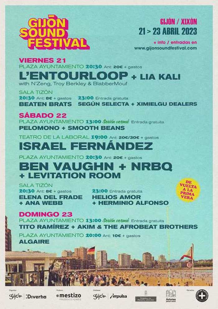 Gijón Sound Festival InformaciónNoticiasFotos Fotografía del Gijón Sound Festival. Foto 3 de 3Siguiente >> Cartel por días edición 2023