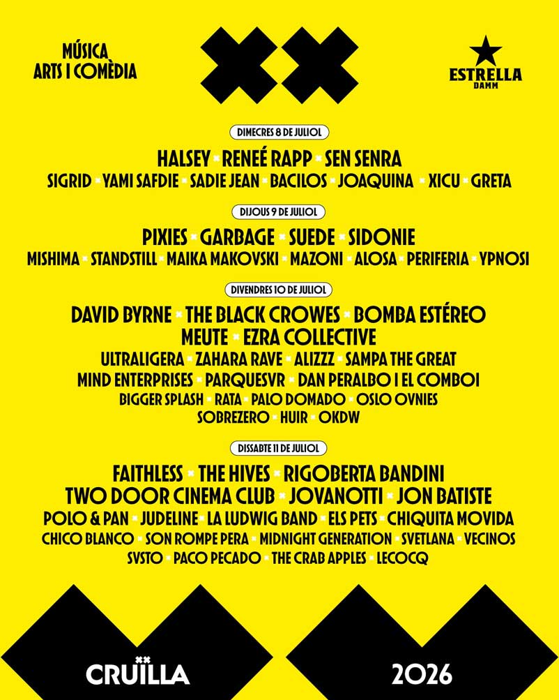 Festival Cruïlla InformaciónNoticiasFotos Fotografía del Festival Cruïlla. Foto 8 de 8AmpliarSiguiente >> Cartel por días edición 2026