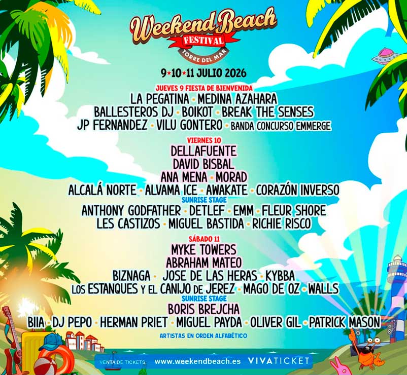Weekend Beach Festival InformaciónNoticiasFotos Fotografía del Weekend Beach Festival. Foto 19 de 19AmpliarSiguiente >> Cartel por días edición 2026