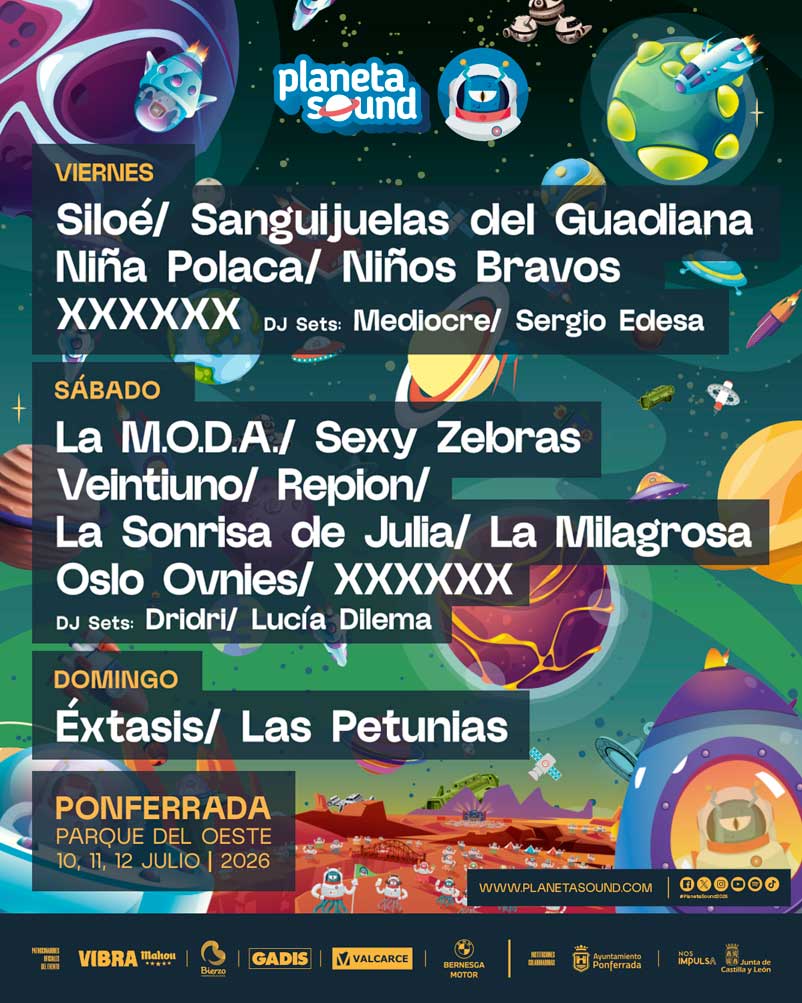 Planeta Sound InformaciónNoticiasFotos Fotografía del Planeta Sound. Foto 10 de 10AmpliarSiguiente >> Cartel por días edición 2026
