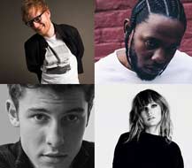 Taylor Swift con 6 parte con el mayor número de candidaturas, seguida por Shawn Mendes, Ed Sheeran y Kendrick Lamar